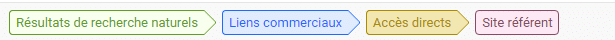 De base, Google Analytics comptabilise les conversions selon un modèle "Dernière Interaction". Ainsi, il attribue 100% du crédit au point de contact qui a déclenché la conversion. Dans l’exemple précédant, 100% de la conversion est donc attribuée aux Sites Référents.