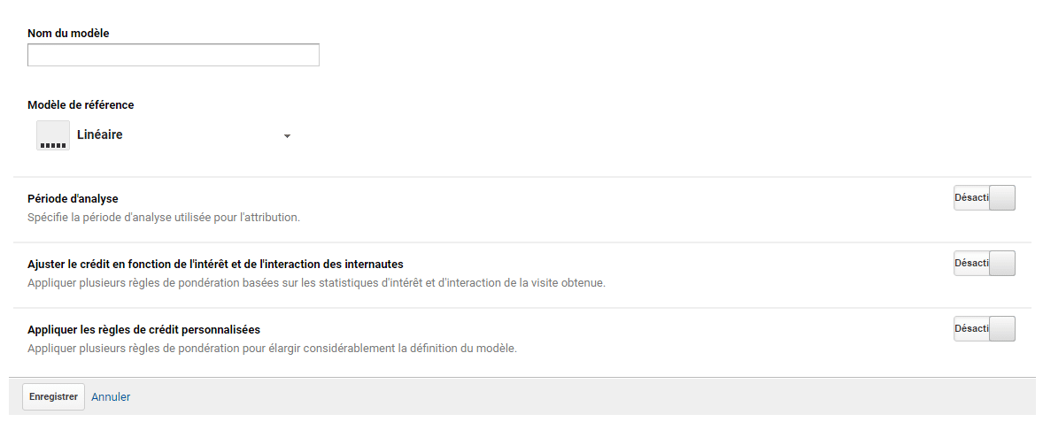 Administration > Modèles d’attribution > Nouveau Modèle d’attribution.